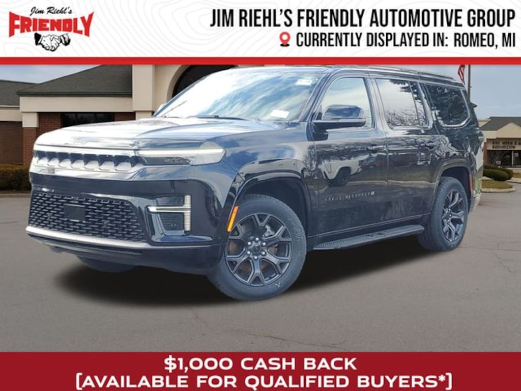 Check out all the standard equipment Altitude Appearance Package, Quick Order Package 29X Altitude (Black Exterior Accents, Titanium Daylight Opening Upper, Titanium Upper Grille Applique, and Wheels: 20" x 9" Aluminum Painted), 118 Mph Maximum Speed Calibration, 3.55 Rear Axle Ratio, 3rd row seats: bench, 4-Wheel Disc Brakes, 9 Speakers, ABS brakes, Air Conditioning, Alloy wheels, AM/FM radio: SiriusXM with 360L, Anti-whiplash front head restraints, Apple CarPlay/Android Auto, Audio memory, Auto Adjust in Reverse Exterior Mirrors, Auto High-beam Headlights, Auto-dimming door mirrors, Auto-Dimming Exterior Driver Mirror, Auto-dimming Rear-View mirror, Auto-leveling suspension, Automatic temperature control, Brake assist, Bumpers: body-color, Compass, Delay-off headlights, Driver door bin, Driver vanity mirror, Driver's Seat Mounted Armrest, Dual front impact airbags, Dual front side impact airbags, Electronic Stability Control, Emergency communication system: Jeep Connect, Exterior Mirrors Approach Lamps, Exterior Mirrors with Memory, Exterior Mirrors with Supplemental Signals, Exterior Parking Camera Rear, Four wheel independent suspension, Front anti-roll bar, Front Bucket Seats, Front Center Armrest w/Storage, Front dual zone A/C, Front fog lights, Front reading lights, Fully automatic headlights, Garage door transmitter, Heated door mirrors, Heated Exterior Mirrors, Heated front seats, Heated rear seats, Heated steering wheel, Illuminated entry, Knee airbag, Leather Trimmed Bucket Seats, Low tire pressure warning, Manufacturer Statement of Origin, Memory seat, MyFlexCare Service Plan, Navigation System, Normal Duty Suspension, Occupant sensing airbag, Outside temperature display, Overhead airbag, Overhead console, Panic alarm, Passenger door bin, Passenger seat mounted armrest, Passenger vanity mirror, Power door mirrors, Power driver seat, Power Liftgate, Power passenger seat, Power steering, Power windows, Radio data system, Radio: Uconnect 5 Nav with 12.0" Display, Rain sensing wipers, Rear air conditioning, Rear anti-roll bar, Rear reading lights, Rear seat center armrest, Rear window defroster, Rear window wiper, Reclining 3rd row seat, Remote keyless entry, Security system, Speed control, Speed-sensing steering, Speed-Sensitive Wipers, Split folding rear seat, Steering wheel memory, Steering wheel mounted audio controls, Tachometer, Telescoping steering wheel, Tilt steering wheel, Traction control, Trip computer, Turn signal indicator mirrors, Variably intermittent wipers, Ventilated front seats, Ventilated rear seats, and Voltmeter. Price includes: $1000 - 2026 National Stellantis Loyalty Bonus Cash . Exp. 04/30/2026