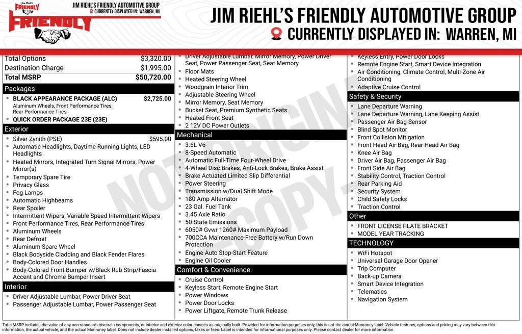 Check out all the standard equipment Black Appearance Package (Gloss Black Exterior Accents and Wheels: 20 x 8.5 Gloss Black Painted Aluminum), Quick Order Package 23E, 4-Wheel Disc Brakes, 6 Speakers, ABS brakes, Active Noise Control System, Air Conditioning, Alloy wheels, AM/FM radio: SiriusXM with 360L, Anti-whiplash front head restraints, Audio memory, Auto High-beam Headlights, Automatic temperature control, Brake assist, Bumpers: body-color, Capri Leatherette Seats, Compass, Delay-off headlights, Driver door bin, Driver vanity mirror, Dual front impact airbags, Dual front side impact airbags, Electronic Stability Control, Emergency communication system, Four wheel independent suspension, Front anti-roll bar, Front Bucket Seats, Front Center Armrest w/Storage, Front dual zone A/C, Front fog lights, Front License Plate Bracket, Front reading lights, Fully automatic headlights, Garage door transmitter, Heated door mirrors, Heated front seats, Heated rear seats, Heated steering wheel, Illuminated entry, Knee airbag, Low tire pressure warning, Memory seat, Model Year Tracking, Navigation System, Normal Duty Suspension, Occupant sensing airbag, Outside temperature display, Overhead airbag, Overhead console, Panic alarm, ParkView Rear Back-Up Camera, Passenger door bin, Passenger vanity mirror, Power door mirrors, Power driver seat, Power Liftgate, Power passenger seat, Power steering, Power windows, Radio data system, Radio: Uconnect 5 Nav with 10.1 Display, Rear anti-roll bar, Rear reading lights, Rear window defroster, Rear window wiper, Remote keyless entry, Security system, Speed control, Speed-Sensitive Wipers, Split folding rear seat, Spoiler, Steering wheel mounted audio controls, Tachometer, Telescoping steering wheel, Tilt steering wheel, Traction control, Trip computer, Turn signal indicator mirrors, Variably intermittent wipers, Voltmeter, and Wheels: 18 x 8 Polished/Painted Aluminum. Must qualify for FCA Employee Discount, Price includes: $1000 - 2025 National Stellantis Loyalty Bonus Cash . Exp. 04/30/2026 $2000 - 2025 National Bonus Cash . Exp. 04/30/2026 $2000 - 2025 National SFS Lease Loyalty Bonus Cash. Exp. 04/30/2026 $2250 - 2025 National Retail Bonus Cash . Exp. 04/30/2026