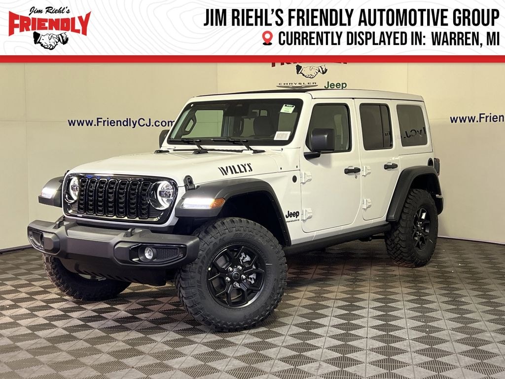 Check out all the standard equipment Convenience Group (2-Door Passive Entry, Front Door Locks, Air Conditioning w/Auto Temperature Control, Air Filtering, Cluster 7.0 TFT Color Display, Emergency/Assistance Call, Heated Front Seats, Heated Steering Wheel, Remote Start System, and Universal Garage Door Opener), Quick Order Package 22W Willys (4-Wheel Drive Swing Gate Decal, 7 & 4 Pin Wiring Harness, Advanced Brake Assist, Automatic Headlamps, Auxiliary Switches, Black Grille, Class II Receiver Hitch, Conventional Differential Front Axle, Corning Gorilla Glass, Dana M210 Wide HD Tube Front Axle, Dana M220 Wide Rear Axle, Daytime Running Lamps LED Accents, Deep Tint Sunscreen Windows, E-Locker Rear Axle, Enhanced Adaptive Cruise Control, Front LED Fog Lamps, Full Speed Forward Collision Warning Plus, Injection Molded Black Rear Bumper, LED Premium Reflector Headlamps, Mold In Color Bumper w/Gloss Black, Molded in Color Rubicon Highline Flare, MOPAR All-Weather Floor Mats, Off-Road Plus Mode, Power Heated Mirrors, Premium Wrapped Steering Wheel, Security Alarm, Sun Visors w/Illuminated Vanity Mirrors, Wheels: 17 x 7.5 Painted Black, Willy's Suspension, and Willys Hood Decal), Safety Group (Auto High Beam Headlamp Control, Blind Spot & Cross Path Detection, LED Taillamps, and ParkSense Rear Park Assist System), 4-Wheel Disc Brakes, 8 Speakers, ABS brakes, Air Conditioning, AM/FM radio: SiriusXM with 360L, Apple CarPlay/Android Auto, Aux Battery, Brake assist, Cloth Low-Back Bucket Seats, Compass, Delay-off headlights, Driver door bin, Driver vanity mirror, Dual front impact airbags, Dual front side impact airbags, Electronic Stability Control, Front anti-roll bar, Front Bucket Seats, Front Center Armrest w/Storage, Front fog lights, Front reading lights, Illuminated entry, Integrated roll-over protection, Low tire pressure warning, MyFlexCare Service Plan, Non-Lock Fuel Cap w/o Discriminator, Normal Duty Suspension, Occupant sensing airbag, Outside temperature display, Overhead airbag, Panic alarm, ParkView Rear Back-Up Camera, Passenger door bin, Passenger vanity mirror, Power steering, Power Top Quarter Window Storage Bag, Power windows, Radio data system, Radio: Uconnect 5 w/12.3 Display, Rear anti-roll bar, Rear reading lights, Rear Window Defroster, Rear Window Wiper/Washer, Remote keyless entry, Removable Rear Quarter Windows, Sky 1-Touch Power Top, Speed control, Split folding rear seat, Steering wheel mounted audio controls, Stop-Start Dual Battery System, Tachometer, Telescoping steering wheel, Tilt steering wheel, Traction control, Trip computer, Variably intermittent wipers, and Wheels: 17 x 7.5 Black Steel Styled. Must qualify for FCA Employee Discount, Price includes: $1500 - 2026 National Retail Bonus Cash . Exp. 12/01/2025