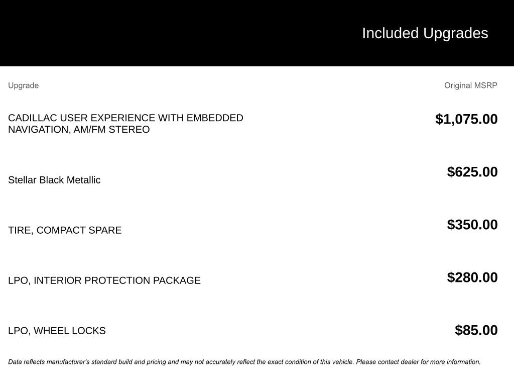 - Radio: Cadillac User Experience w/Embedded Nav$1,075