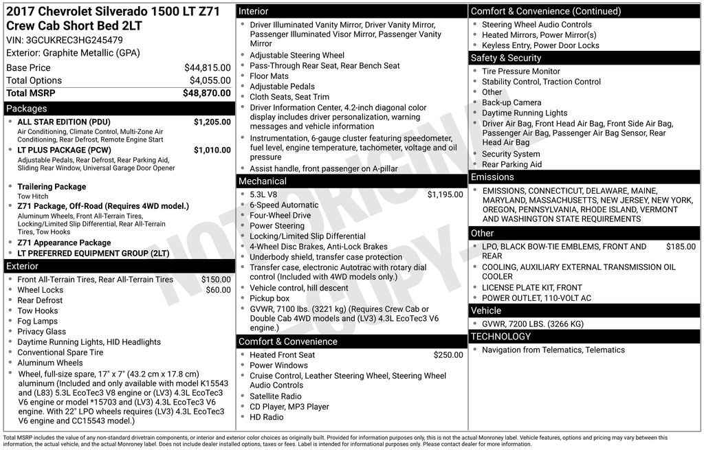 2017 Chevrolet Silverado 1500 LT Graphite Metallic EcoTec3 5.3L V8 6-Speed Automatic Electronic with Overdrive