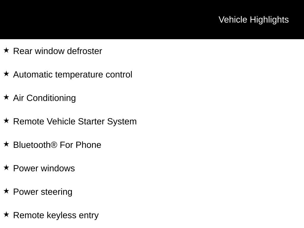 - Remote engine start: keyfob