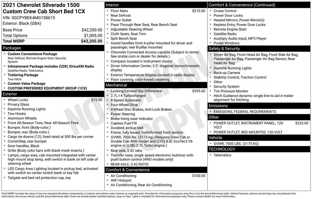 2021 Chevrolet Silverado 1500 Custom Black 2.7L Turbo 8-Speed Automatic