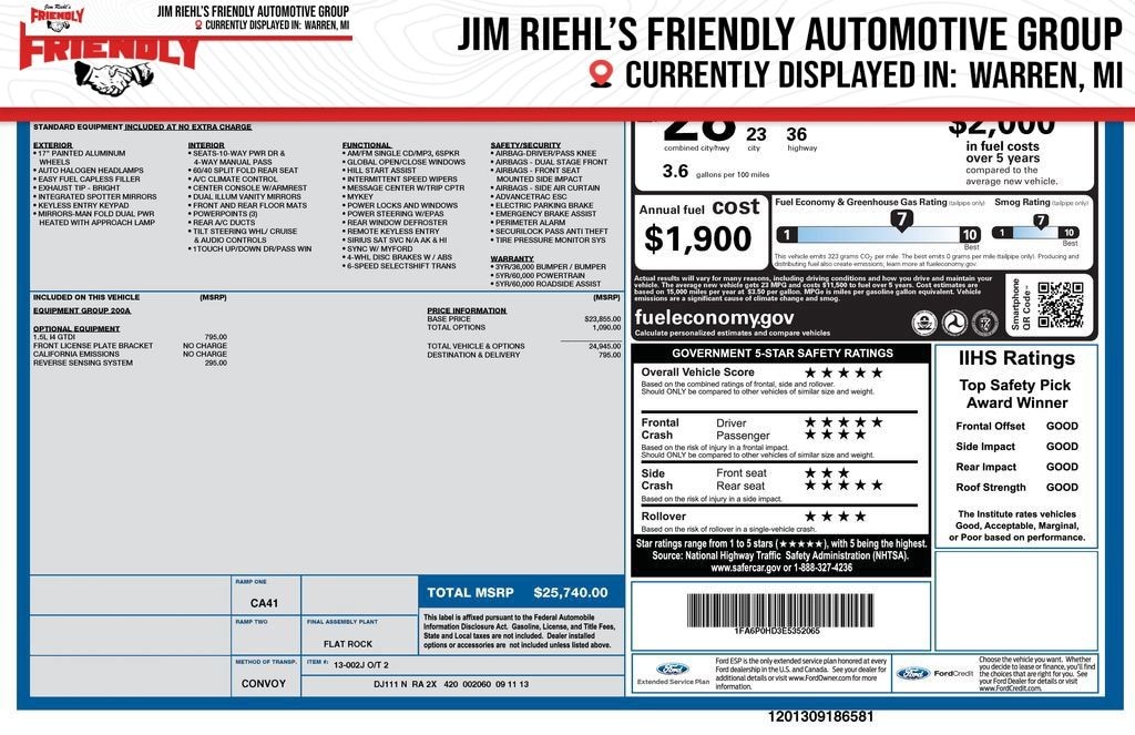 2014 Ford Fusion SE White 1.5L EcoBoost 6-Speed Automatic