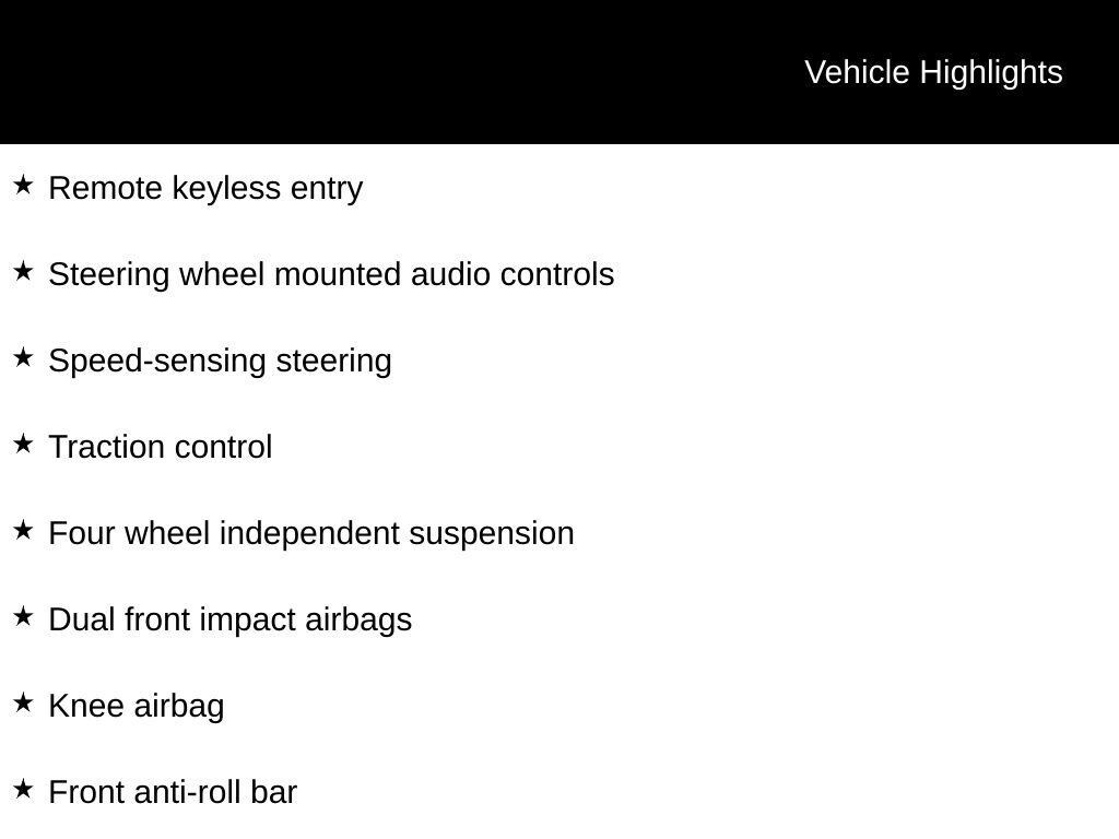 The advertised price does not include sales tax, vehicle registration fees, other fees required by law, finance charges and a $280 documentation Fee and $299 Reconditioning Fee . * Images, prices, and options shown, including vehicle color, trim, options, pricing and other specifications are subject to availability, incentive offerings, current pricing and credit worthiness.