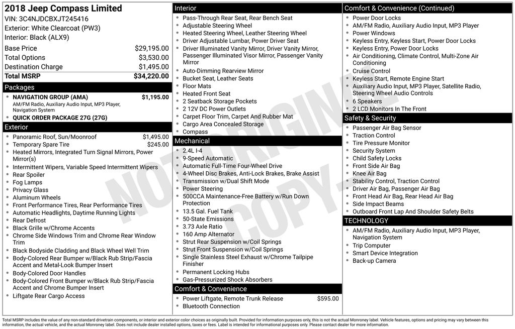 2018 Jeep Compass Limited White Clearcoat 2.4L I4 9-Speed Automatic