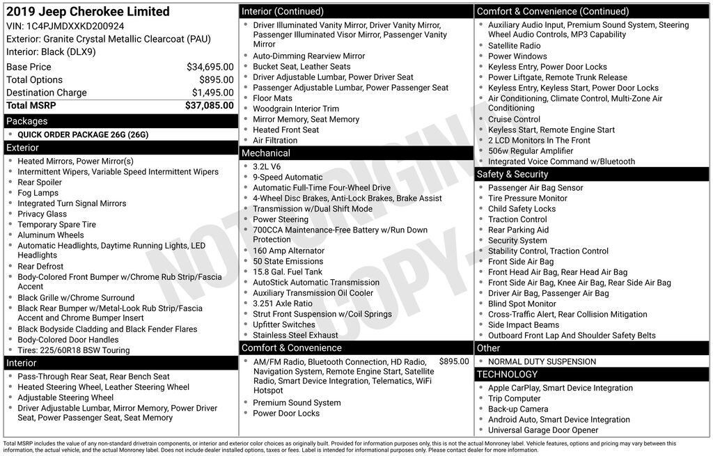 2019 Jeep Cherokee Limited Granite Crystal Metallic Clearcoat 3.2L V6 9-Speed 948TE Automatic