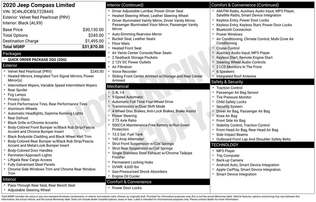 Whether you're commuting to the office, taking a road trip, or tackling off-road adventures, the 2020 Jeep Compass Limited is the perfect companion. With its winning combination of capability, technology, and refinement, this SUV is sure to exceed your expectations. We invite you to experience the Compass for yourself schedule a test drive today and discover the difference.
