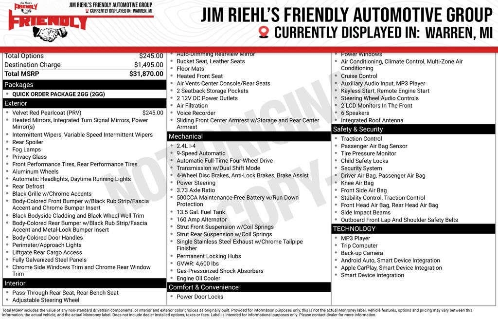 - ParkView rear back-up camera, blind spot monitoring, and other advanced safety features