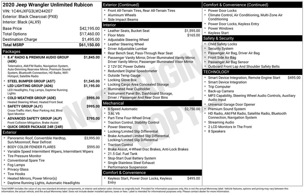 Elevate your off-road adventures with the exceptional capability and premium amenities of this 2020 Jeep Wrangler Unlimited Rubicon. Rugged yet refined, this Wrangler is the ultimate expression of Jeep's legendary DNA, blending uncompromising 4x4 performance with a host of advanced features to enhance your driving experience. Schedule a test drive today and discover the unmatched freedom and capability that only a Wrangler Rubicon can deliver.