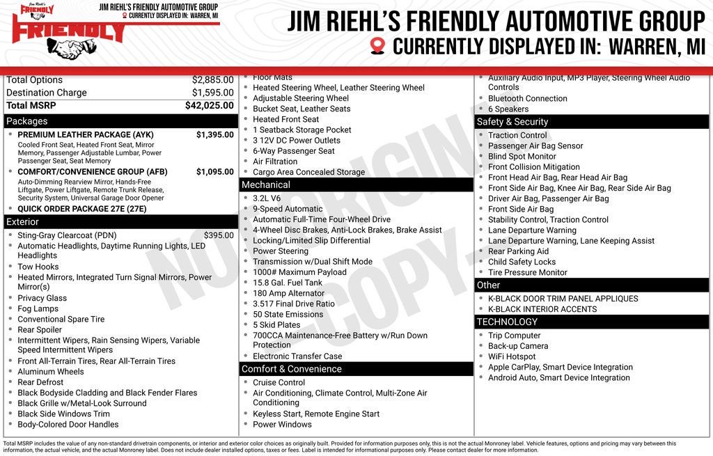 Indulge in the comfort and convenience of the PREMIUM LEATHER PACKAGE, which includes memory-equipped power driver's seat, ventilated front seats, and a power-adjustable front passenger seat. The COMFORT/CONVENIENCE GROUP further enhances your ride with a hands-free power liftgate, security alarm, and universal garage door opener.