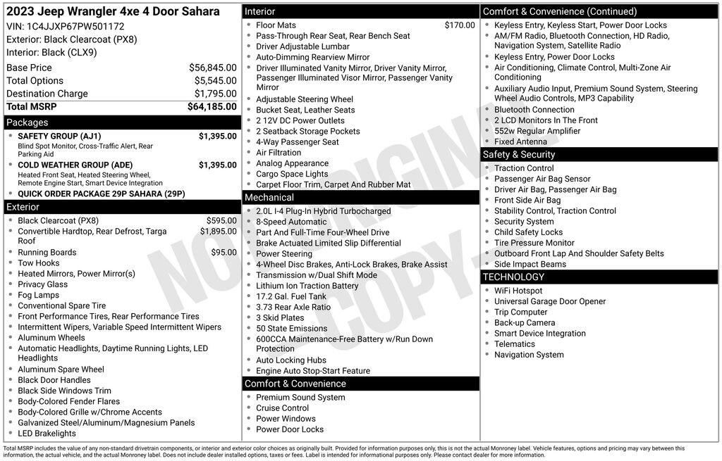 2023 Jeep Wrangler Sahara 4xe Black Clearcoat 2.0L I4 DOHC 8-Speed Automatic