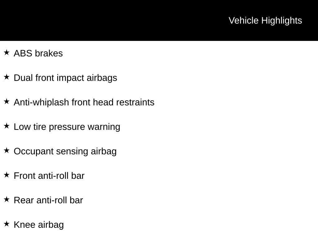 - Dual front side impact airbags