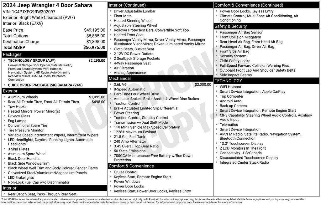 2024 Jeep Wrangler Sahara Bright White Clearcoat 3.6L V6 24V VVT 8-Speed Automatic