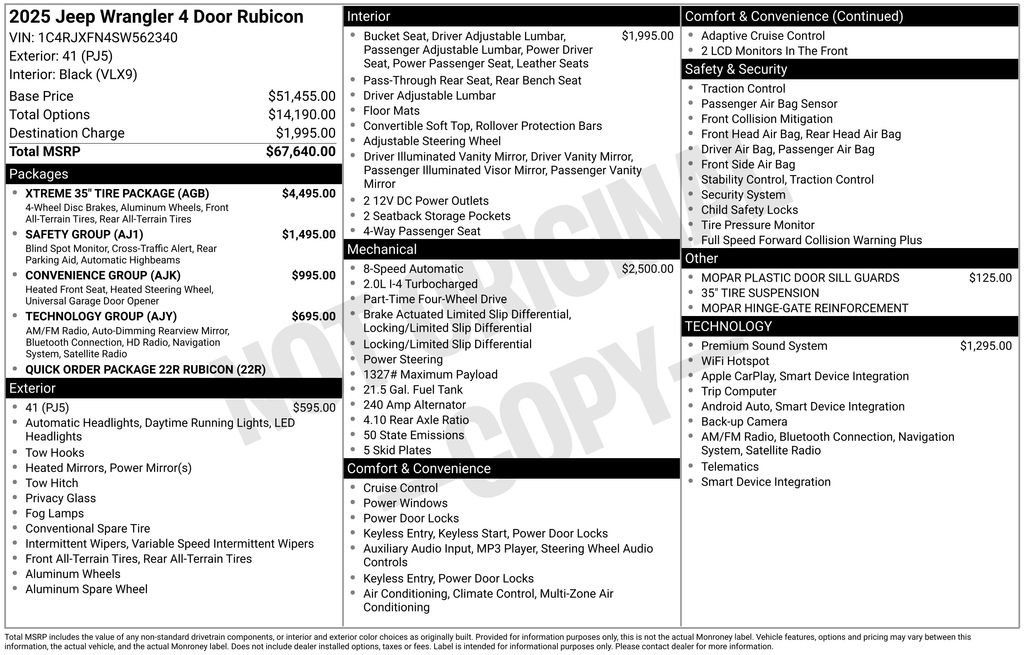 2025 Jeep Wrangler Rubicon 41 2.0L I4 DOHC 8-Speed Automatic