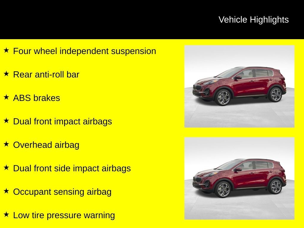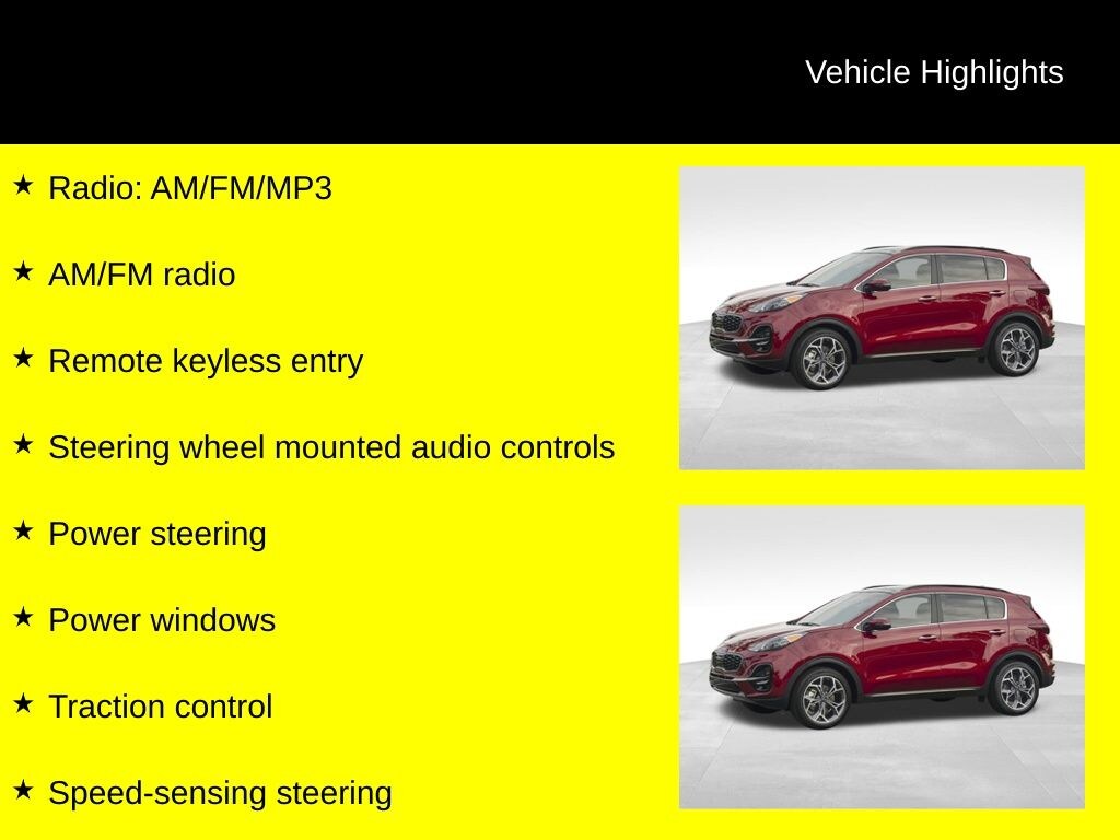 Clean CARFAX. Sportage S, 6-Speed Automatic Electronic with Overdrive, AWD, 4-Wheel Disc Brakes, ABS brakes, AM/FM radio, Auto High-beam Headlights, Brake assist, Bumpers: body-color, Delay-off headlights, Dual front impact airbags, Dual front side impact airbags, Electronic Stability Control, Exterior Parking Camera Rear, Four wheel independent suspension, Front fog lights, Fully automatic headlights, Heated door mirrors, Heated front seats, Leatherette Seat Trim, Low tire pressure warning, Occupant sensing airbag, Overhead airbag, Panic alarm, Power steering, Power windows, Radio: AM/FM/MP3, Rear anti-roll bar, Rear window wiper, Remote keyless entry, Security system, Speed control, Speed-sensing steering, Steering wheel mounted audio controls, Traction control, Variably intermittent wipers. 22/26 City/Highway MPG