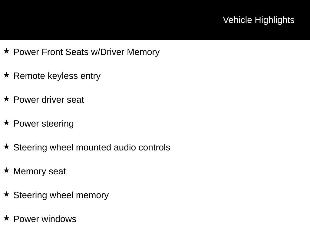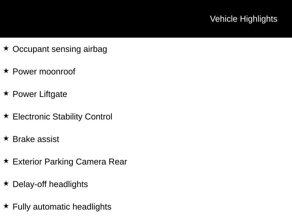 Clean CARFAX. Priced below KBB Fair Purchase Price! 4-Way Lumbar Support, Brake assist, Delay-off headlights, Dual front impact airbags, Dual front side impact airbags, Electronic Stability Control, Exterior Parking Camera Rear, Four wheel independent suspension, Fully automatic headlights, Heated Front Bucket Seats, Knee airbag, Low tire pressure warning, Memory seat, Occupant sensing airbag, Overhead airbag, Panic alarm, Power adjustable front head restraints, Power driver seat, Power Front Seats w/Driver Memory, Power Liftgate, Power moonroof, Power steering, Power windows, Rain sensing wipers, Rear fog lights, Rear window wiper, Remote keyless entry, Security system, Speed control, Speed-Sensitive Wipers, Steering wheel memory, Steering wheel mounted audio controls, Traction control.