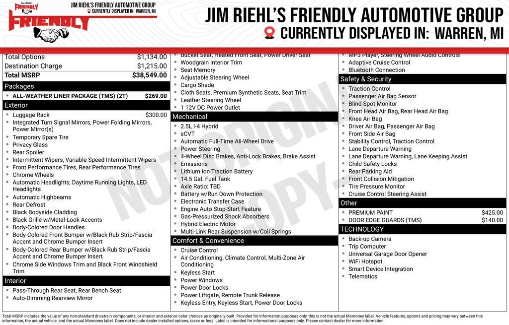 - Hybrid electric powertrain type: HEV (hybrid electric vehicle)