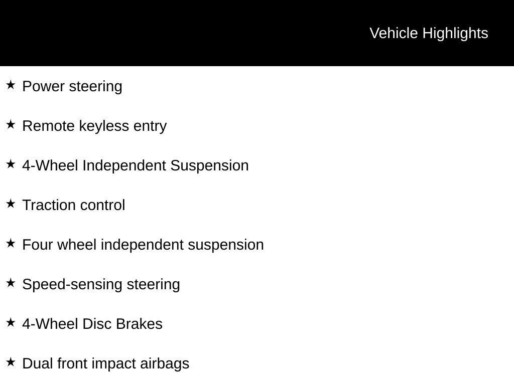 The advertised price does not include sales tax, vehicle registration fees, other fees required by law, finance charges and a $280 documentation Fee and $299 Reconditioning Fee . * Images, prices, and options shown, including vehicle color, trim, options, pricing and other specifications are subject to availability, incentive offerings, current pricing and credit worthiness.